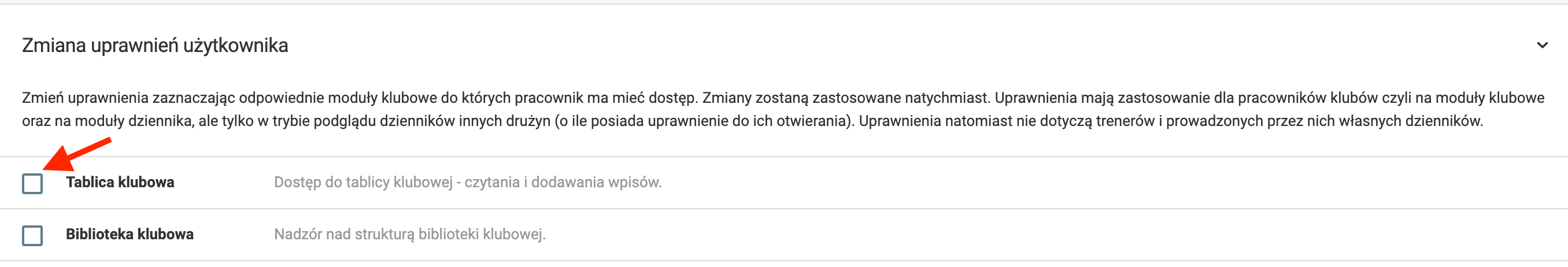 Aby przejść do ustalania uprawnień pracowników, przejdź w lewym menu do klub pracownicy lista pracowników i w ostatniej kolumnie, przy danym pracowniku kliknij w opcję "uprawnienia". Z tego też miejsca możesz usunąć pracownika, klikając w menu opcję "usuń".